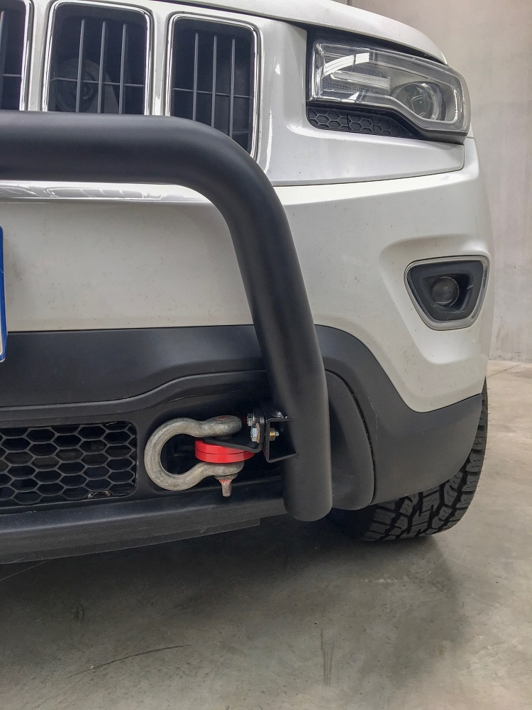In Australia we call it a nudge bar.  Americans often refer to it as a bull bar.  Whatever you call it, don’t leave your Grand Cherokee unprotected upfront. This 2.5″ steel bar is perfect for the occasional protection required, and great place for mounting accessories like lights or antenna.   Tow points are required to mount this bar to the vehicle. Select option above to add Offroad Tow points if you do not already have them.  Benefits Protects the front of your Grand Cherokee from small bumps or can be used to nudge things out of the way. Comes with some snazzy looking Rated Red Tow hooks that can be used to pull yourself fwd or others backwards Great platform for mounting lights (requires clamp on mounts which are not included)   Features Made from 2.5″ x 2mm Steel tube.  Mounts off 2 tow hooks which are made up of 2 x10mm steel plates, so pulling from 20mm steel per side Zinc plated then powder coated matte black Works with Grand Cherokee Parking Sensors- * note some Jeeps 2017-current have extra sensitive sensors If so you can fix this issue by putting on a small clear vinyl pad from Bunnings .  Works with Grand Cherokee Adaptive cruise radar Easy to install Works with Offroad Animal front bumper and hidden winch mount or can be run alone   This Nudge bar fits all Wk2 Grand Cherokees 2011-2020 Included in the box (if you already have tow points) Nudge bar RH mount LH mount Nuts and bolts Included in the box (if you don’t already have tow points) Nudge bar RH Mount LH Mount Tow hook set  Nuts and bolts If you want to run accessories ontop of the nudge bar make sure you get clamps that work with tube that is 60mm in diameter.  Click here to get your set now Click on fitting tab to download a PDF fitting instructions sheet   Install time: 1 hour Install difficulty: 3/10  Calculated shipping price at checkout is for Metro Brisbane, Sydney, Melbourne, Adelaide, Hobart, and Perth.  If you are out of these areas either contact us for freight quote or we will call you prior to shipping for the extra charge