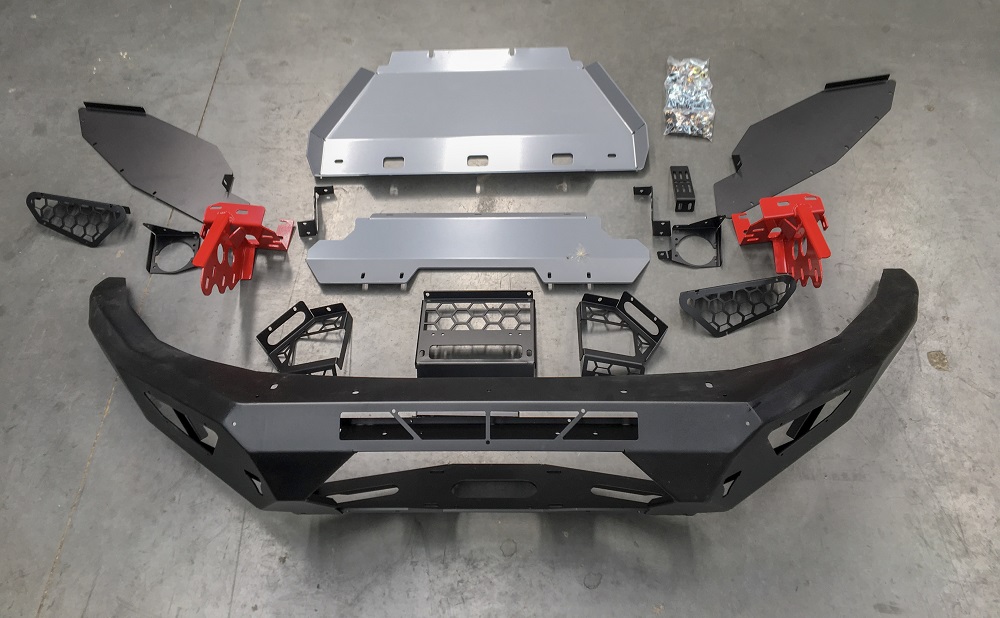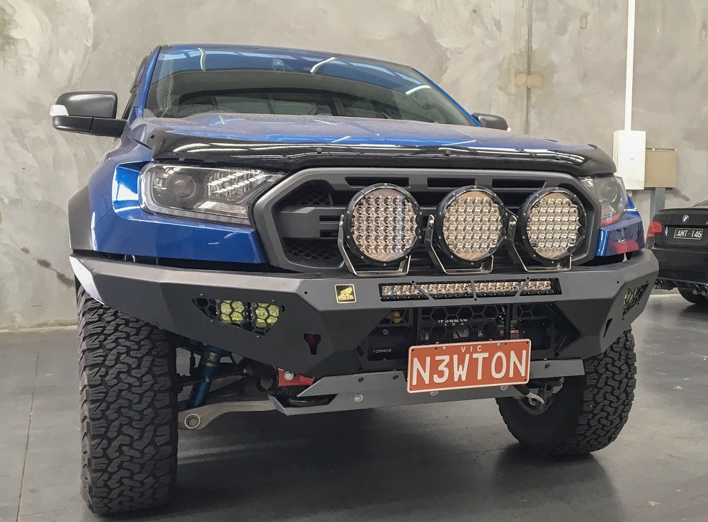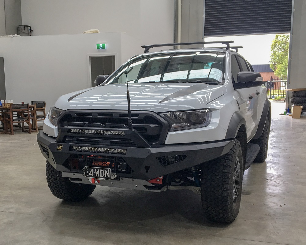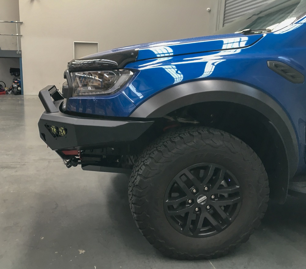 Please note we can only deliver this product to a business address, if you put a residential address we’ll contact you for a business address. We can get it dropped at the closest depot if you like. So the best looking and driving Ute on the market needs the best looking bar right. Hell yeah, and Offroad Animal has you covered. Benefits. Looks. Yep this bad boy looks great and will give your Raptor Ranger that Super aggressive look Smaller bar means it weighs less so your Raptor Ranger can still be fast. This bar only adds 19kg to your Raptor Ranger, light and strong with out sticking too far out, as we remove 34kg of factory components. Better Airflow than the rest to keep your motor cool too. Easy fitment of bar and winch Winch can be fitted after bar is fitted so, yeah, nice Winch mounts feet down, (actually how most winches were designed,) Can have LED light bar fit inside bar for super stealth cool look (up to 22″ LED single row) Cover plate can be included if you don’t want to have light bar set into bull bar Can have LED light bar fitted into optional top stealth hoop. Features ADR compliant Airbag compatible Bumper replacement, with no cutting required Optional top hoop- Stealth hoop which takes up to a 22″ LED light bar single row, or 2″ round tube Welded one piece bar with welded wing supports for super toughness Only sits 150-160mm out from front of grill. Compare that to our standard 3 letter competitors Zinc plated then powder coated Matte black Hi lift jacking points included Suits most low mount winches including Warn Zeon Works with factory fog lights or easily mount 2 Cube lights (per wing) or up to an 8″ LED light bar in each wing. Number plate flip included for those running a winch Can be colour coded to vehicle Works with factory tow points Heavy duty aluminium bash plates provided 5mm thick. While the bumper takes most single row led light bars (we suggest the Offroad Animal 22″ LED light bar) If you don’t want to run this light we can supply a cover plate. Stealth top hoop has same arrangement for led light bar, fitting most single row light bars, but we suggest the Offroad Animal 22″ LED light bar We have measured quite a few Raptor Rangers with this bull bar and on average you’ll see your front suspension drop 2mm with the bar on, and up to 5mm when a winch is also added with lights. Included in box 1 x Front bar weldment 1 x LH chassis impact bracket 1 x RH chassis impact bracket 1 x mesh fairlead mount 1 x Mesh infill LH 1 x Mesh infill RH 1 x Light cover Mesh LH 1 x Light cover Mesh RH 1 x fog lamp bracket LH 1 x fog lamp bracket RH 1 x centre bash plate 1 x Under bash plate 1 x under wing panel LH 1 x under wing panel RH 1 x Trim plate front (for those not running LED light bar inside bar 1 x Chassis bracket gusset LH 1 x Chassis bracket gusset RH 1 x winch control box bracket 1 x number plate flip A butt load of nuts and bolts to make it all sit nice and pretty Fitting instructions available from fitting tab, download PDF format Install time: 3-4 hours Install difficulty: 4/10 Calculated shipping price at checkout is for Metro Brisbane, Sydney, Melbourne, Adelaide, Hobart. If you are out of these areas either contact us for freight quote or we will call you prior to shipping for the extra charge