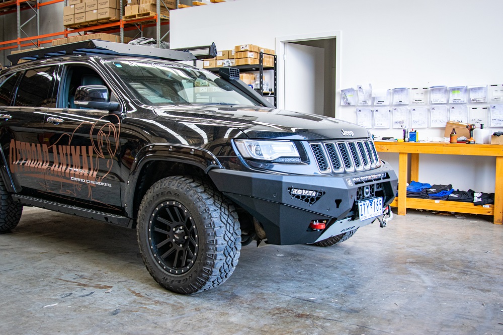 Please note we can only deliver this product to a business address, if you put a residential address we’ll contact you for a business address. We can get it dropped at the closest depot if you like. The Grand Cherokee is a super sexy looking vehicle, but lacks some serious protection on the front not just for off road driving but for animal strikes as well. Don’t leave your pride and joy un protected. Offroad Animals’ Predator bar will not only protect your rig from Animal strikes and offroad mishaps but looking bloody good in the process. Benefits: Full steel construction for ultimate protection Much improved approach angle Great platform for mounting a winch Great platform for mounting lights or antennas Works with all parking sensors and Adaptive cruise, and Autonomous Emergency braking features. Looks awesome on the front of your Grand Much lighter bar compared to main competitors due to our much smarter design Only adds 100mm to front of vehicle Features: ADR compliant Airbag compatible Works with parking sensors, and Adaptive Cruise Radar Welded one piece bar with welded wing supports for super toughness only adds 100mm to the front of the vehicle. This is considerably better than all bull bars on the market Zinc plated then powder coated Matte black as standard Hi lift jacking points integrated into design as standard Suits most winches with no extras required including Warn Zeon winch Factory fog lights do not fit, however you can run 1 or 2 LED driving lights per wing. Let us know your preference and we can talk you through it Number plate flip included as standard for those running a winch Can be colour coded to vehicle Offroad Animal steel tow hooks are required to run this bumper so if you already have them you save cash 2 different under panel set ups, for those running Air Suspension and those not. Make sure you select which suspension you have in options above. No air suspension means smaller panels that sit closer to body While the bumper takes most single row led light bars (we suggest the Offroad Animal 22″ LED light bar) Suits the following vehicles: This bar suits the following WK2 Grand Cherokees Model Year 2011-2021 including Overland, Overland-S, Limited, Limited-S, Summit, Trail hawk and Laredo. Does require cutting original bumper Fitting time 5-6 hours Fitting difficulty 6/10 Included in box 1 x Front bar weldment 1 x LH chassis impact bracket 1 x RH chassis impact bracket 1 x mesh fairlead mount 1 x Mesh infill LH 1 x Mesh infill RH 1 x Light cover Mesh LH 1 x Light cover Mesh RH 1 x centre bash plate 1 x under wing panel LH 1 x under wing panel RH 1 x winch control box bracket 1 x number plate flip 1x Pinch weld seal 1 x ACC mount A butt load of nuts and bolts to make it all sit nice and pretty Please note at the moment TNT and Toll Express can only deliver to business addresses, if you put a residential address we’ll contact you for a business address. We can get it dropped at nearby depots if you like. Calculated shipping price at checkout is for Metro Brisbane, Sydney, Melbourne, Adelaide, Hobart. If you are out of these areas either contact us for freight quote or we will call you prior to shipping for the extra charge Colour coded bars are not colour matched. If you want colour matched you need to send us a vehicle panel to match. Colour code is close but not exact match. Please put your VIN so we can get Colour code. Colour coding generally adds 1-2 weeks on to lead time.