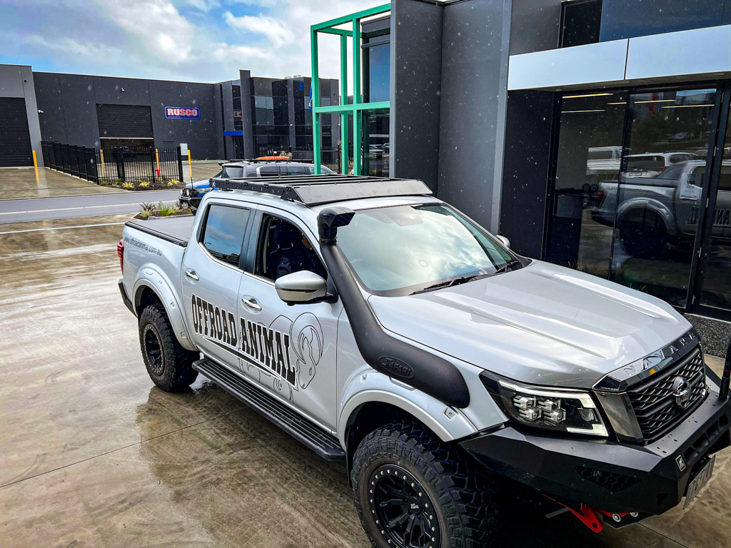 While there are lots of roof racks out there on the market, they all suffer a few problems that the Offroad Animal rack solves. 1. This rack is super quiet, and 2. This rack is not a universal rack but is actually designed specific so it looks great. Stop putting up with loud racks that don’t look right on your Ute. Pick up an Offroad Animal Scout Rack and be the envy of all your mates and you’re Mrs will be happy too with how quiet it is. Benefits Super Quiet design Light weight aluminium design Very versatile with T-Slot slats on all 4 sides of slats, suits standard M8 nuts and bolts Looks the best on the market Easy to put together Low profile for better wind resistance Optional wind deflector that holds 42″ LED light bar Super low profile, only adds 55mm to height of vehicle Features Supplied with 5 T slot aluminium rails that can quickly and easily fit standard T nuts to secure gear anywhere Vehicle roof rated to 80kg on road and 54kg off-road, minus rack weight of 22kg means you can have 58kg on road and 38kg off-road on-top of this rack. While our rack can take far more than this, your vehicles roof supposedly can’t, so bear this in mind. Works with many aftermarket accessories as ours had flat top and sides Optional Wind-deflector can be purchased which integrates a 42″ light bar Powder coated matte black Optional Light bar Wind Deflector holds single or double row light bar up to 42″ Box includes 5 x Aluminium cross rails 1 x Wind deflector 1 x LH side rail 1 x RH side rail 4 mounting brackets Big bag of nuts and bolts Fitting difficulty 6/10 Fitting time- 3-4 hours. Suits all Navara NP300 models except THE PRO 4X MODEL Click fitting tab to download fitting instructions Calculated shipping price at checkout is for Metro Brisbane, Sydney, Melbourne, Adelaide, Hobart. If you are out of these areas either contact us for freight quote or we will call you prior to shipping for the extra charge